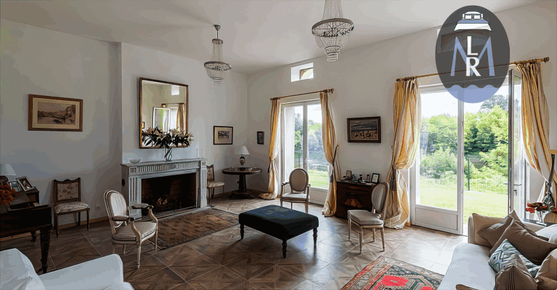 The grand salon in the Manoir is elegantly furnished and a place to relax and enjoy the spectacular views.